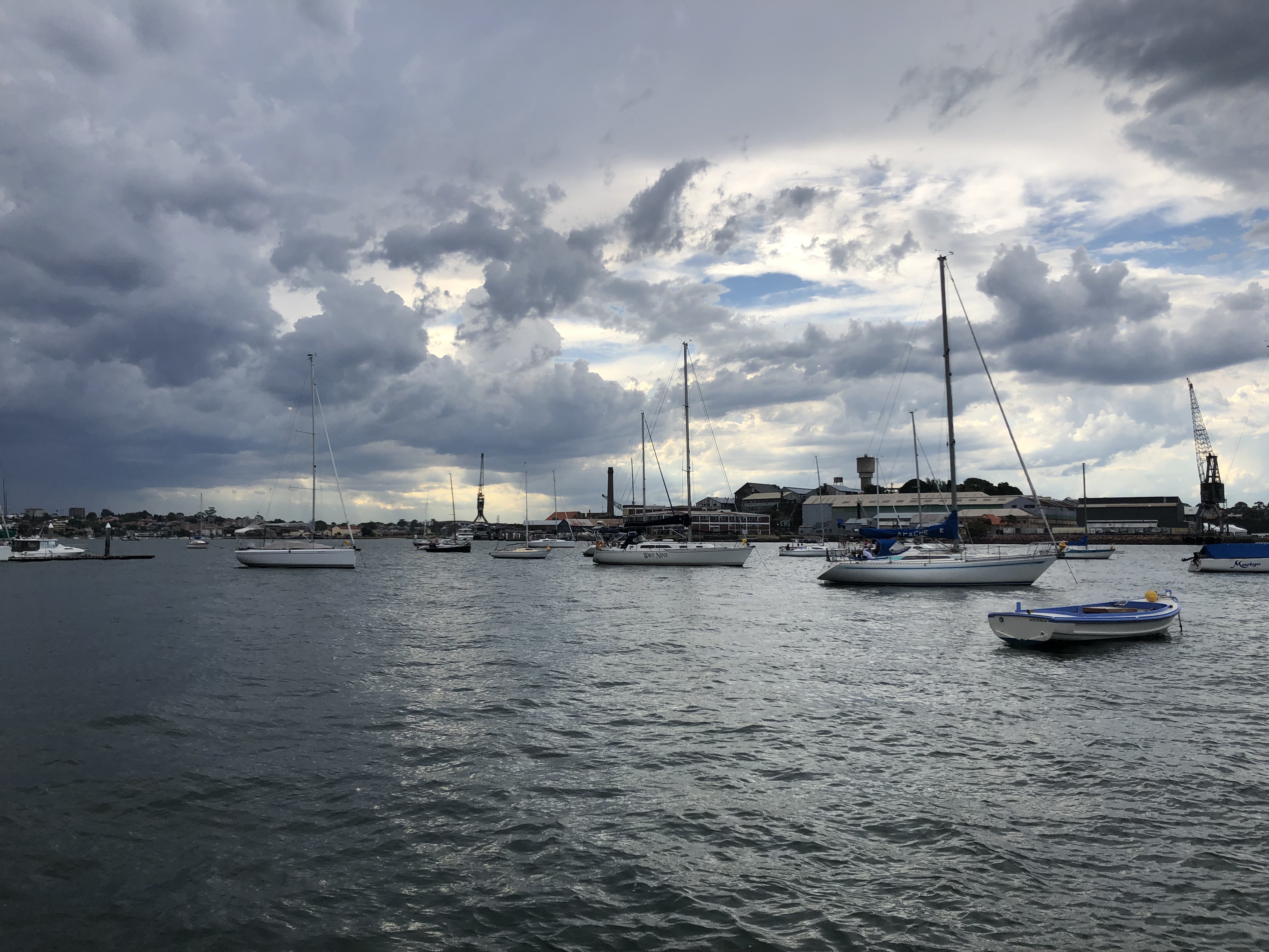 Breeze is always temperamental in Balmain. It bends around islands and changes speed and directions in ways that make it tricky to predict what’s going to happen next sometimes. The forecast was for 20 knots yet it died completely towards the end of the race (that’s when the entire fleet caught up with us as we were sitting in a hole).